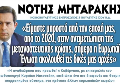 Δήλωση για το Αντιμόνιο παραχώρησε στην Εφημερίδα Documento ο Βουλευτής ΝΔ Χίου, κ. Νότης Μηταράκης.