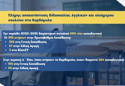 Η εξέλιξη αυτή έρχεται σε συνέχεια της πρόσφατης συνάντησης (22/01/26) του κ. Μηταράκη με τον Υφυπουργό Κλιματικής Κρίσης και Πολιτικής Προστασίας Κώστα Κατσαφάδο και τον Γενικό Γραμματέα Αποκατάστασης Φυσικών Καταστροφών και Κρατικής Αρωγής Πέτρο Καμπούρη, κατά την οποία συζητήθηκε η συνολική πρόοδος των μέτρων στήριξης για τις πληγείσες περιοχές της Χίου.
